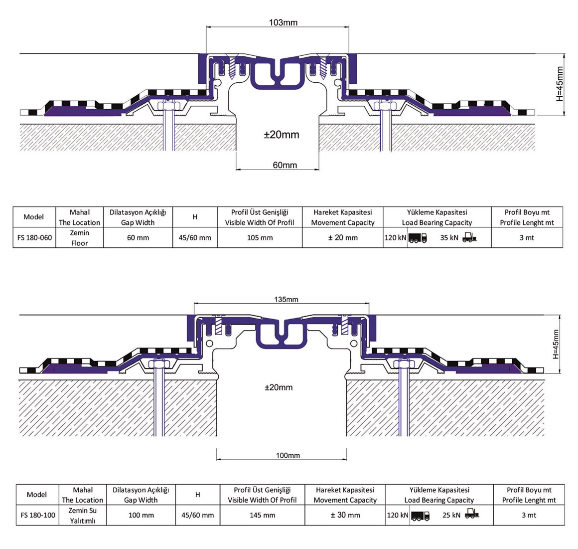 ALÜMİNYUM DİLATASYON SİSTEMLERİSu Yalıtımlı Dilatasyon Profilleri